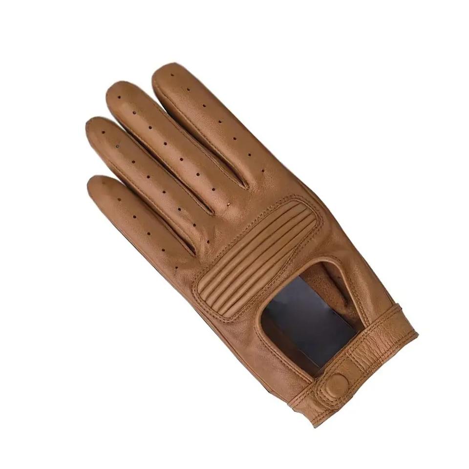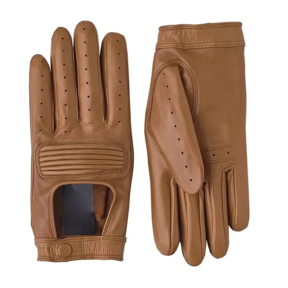 ถุงมือขับรถมืออาชีพวัสดุหนังชั้นดีพิมพ์โลโก้ตามสั่งของผู้ผลิต