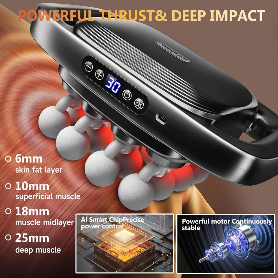 ปืนนวดไฟฟ้าคุณภาพสูงระดับมืออาชีพ สำหรับนวดเนื้อเยื่อลึก ลดอาการปวดเมื่อยกล้ามเนื้อ ราคาประหยัด ระยะการสั่นสะเทือน 16 มม. ปรับความเร็วได้ 3 ระดับ