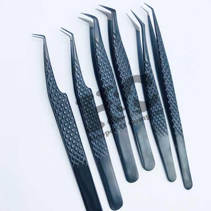 แหนบปลายไฟเบอร์แบบมืออาชีพสำหรับการต่อขนตาโลโก้มิงค์