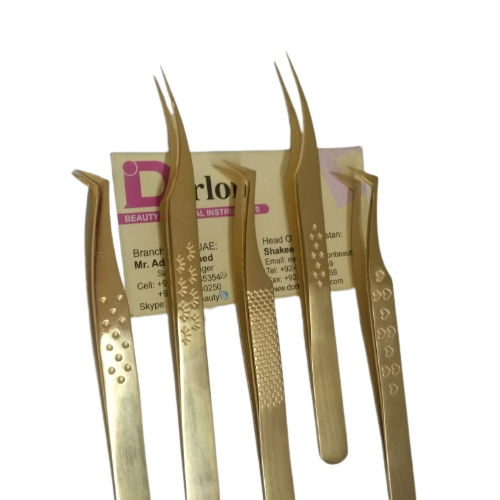 แหนบต่อขนตาชุบทองแหนบสแตนเลสแบบแยกดาวและรูปหัวใจ