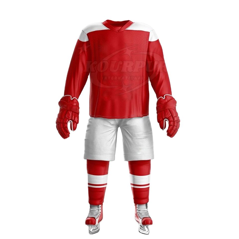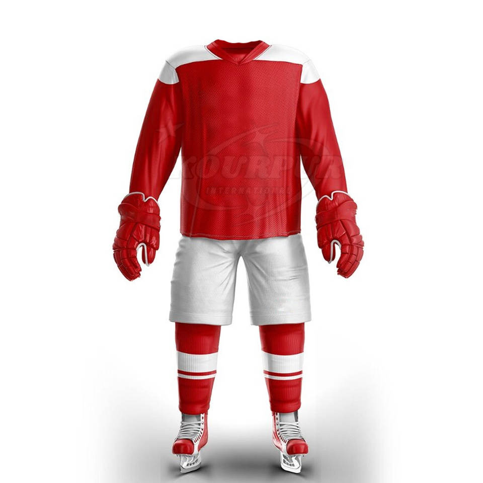 ชุดยูนิฟอร์มฮอกกี้น้ำแข็งสำหรับผู้ชายคุณภาพสูงระดับมืออาชีพ บริการ OEM/ODM แบบกำหนดเอง ระบายอากาศได้ดี แห้งเร็ว ผลิตจากโพลีเอสเตอร์ 100%