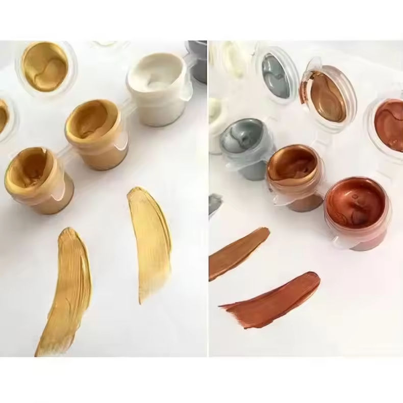 สีอะคริลิคเมทัลลิกคุณภาพสูง ปลอดสารพิษ สำหรับงานศิลปะบนผ้าใบ ชุด 6 สี ขนาด 12 มล. พร้อมพู่กัน