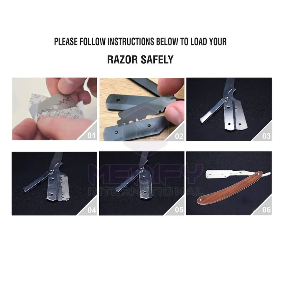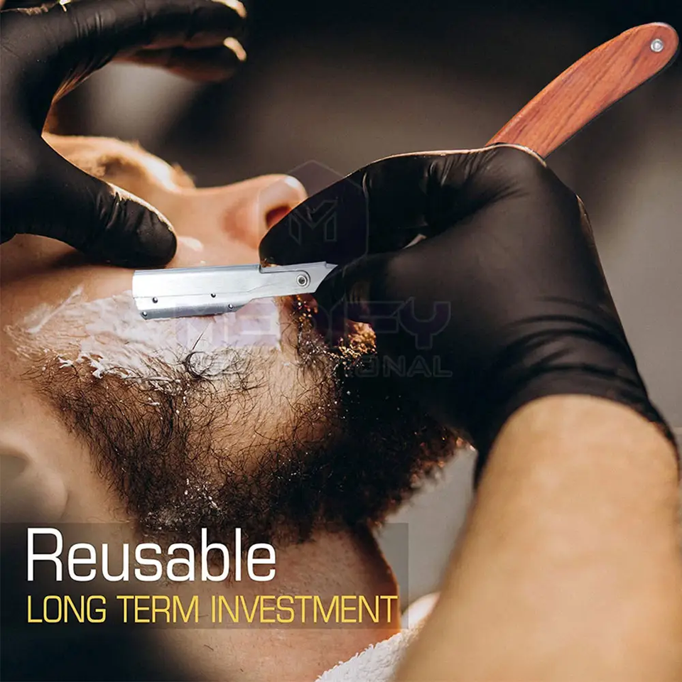 มีดโกนสำหรับร้านเสริมสวยแบบตรงใบมีดสแตนเลสสตีลเยอรมันใช้ซ้ำได้น้ำหนักเบา