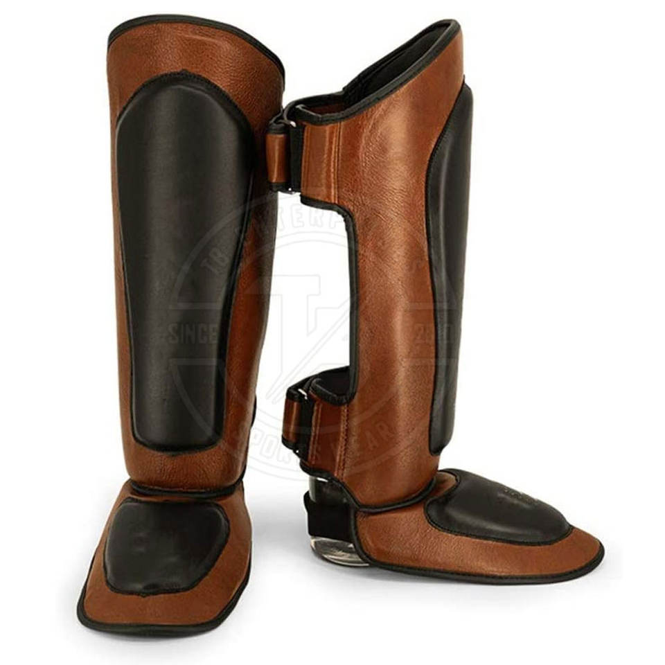 High Quality Professional Protection Waterproof Breathable Leather Shin Guard for Adult Soccer Use