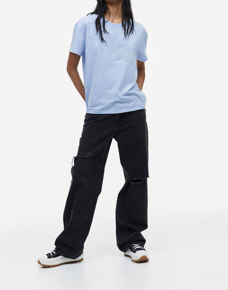 เสื้อยืดโอเวอร์ไซส์สำหรับผู้หญิงพิมพ์โลโก้พิมพ์ลายพัฟฟ์ผ้าฝ้ายเปล่าทรงหลวมไหล่ตก