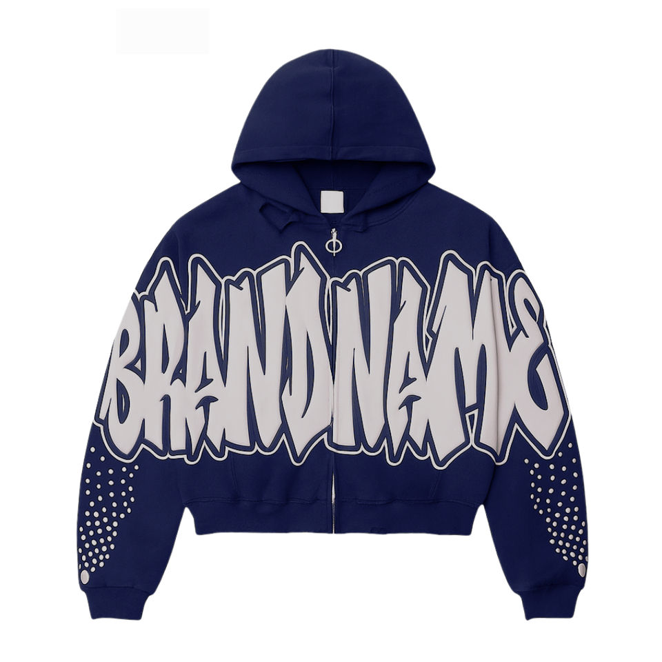 เสื้อฮู้ดดี้สตรีทแวร์แบบสั้น คอเต่า ซิปหน้า ผ้าถักเนื้อหนา พิมพ์ลายพัฟฟ์ คุณภาพสูง สำหรับฤดูหนาว ทรงโอเวอร์ไซส์