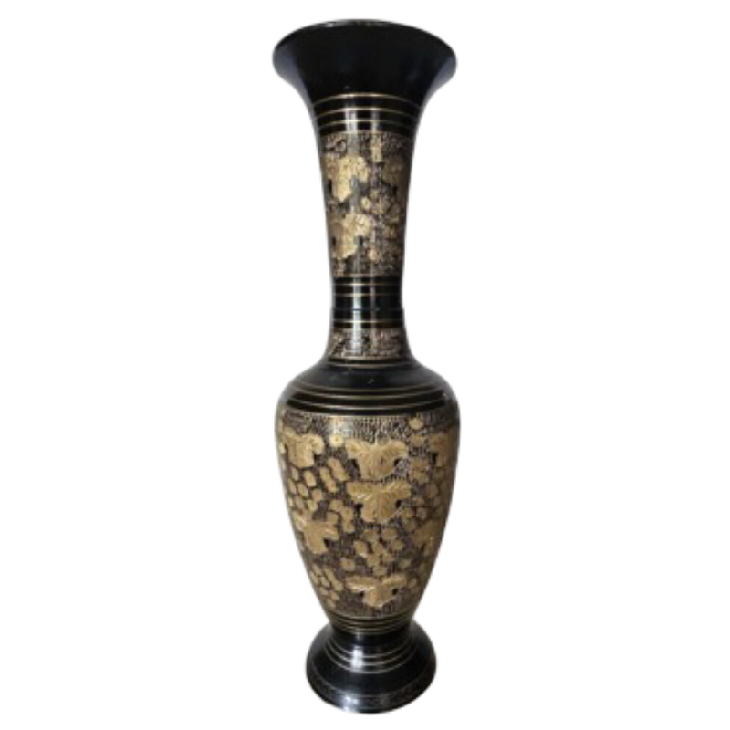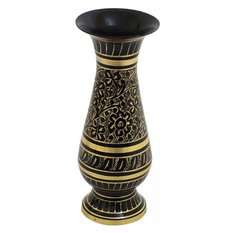 แจกันดอกไม้ทองเหลืองแท้คุณภาพสูงสไตล์วินเทจลายดอกไม้อารบิก แกะสลักด้วยสีดำและเคลือบเงา สำหรับตกแต่งบ้านบนโต๊ะ