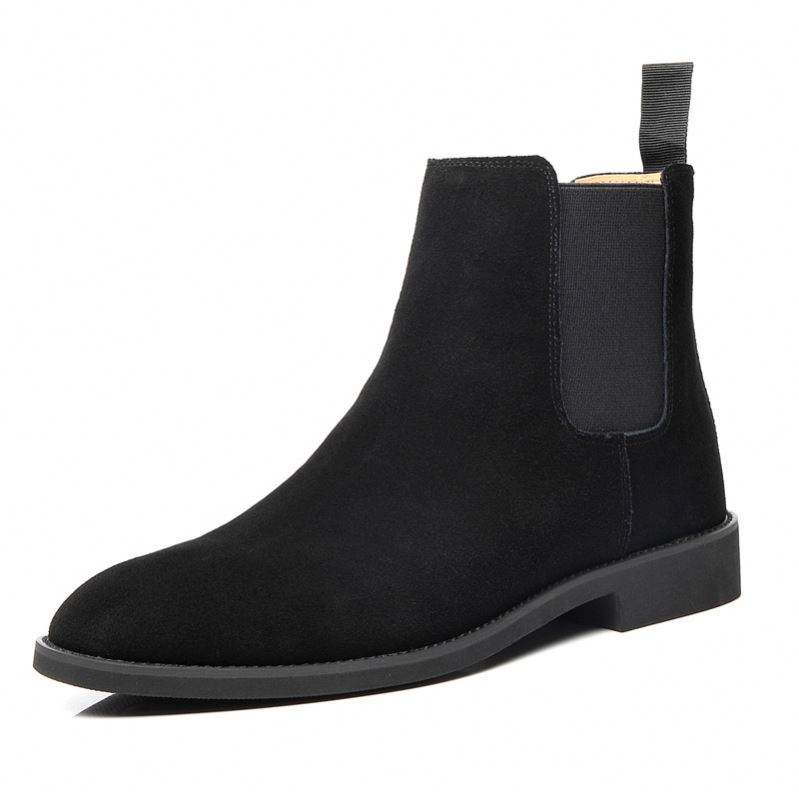 รองเท้าบูทเชลซีหนังแท้สำหรับผู้ชายรองเท้าบูทกลางแจ้งแฟชั่นคลาสสิกสีบริสุทธิ์