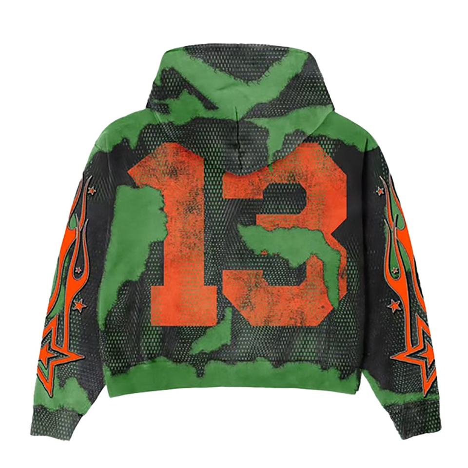 เสื้อฮู้ดผู้ชายผ้าฝ้ายแท้ลายพิมพ์ดิจิตอลสไตล์สตรีทย้อนยุคเสื้อครอปปะแบบซีด