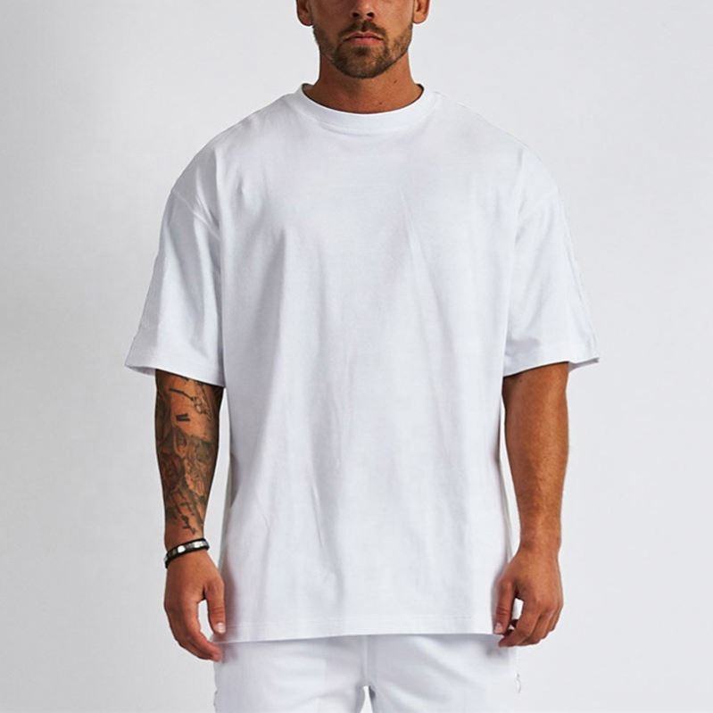 เสื้อยืดสตรีทแวร์ผ้าฝ้ายแท้คุณภาพสูง เสื้อยืดโอเวอร์ไซส์ พิมพ์โลโก้ตามสั่ง เสื้อยืดสีขาวเนื้อหนาสำหรับผู้ชาย