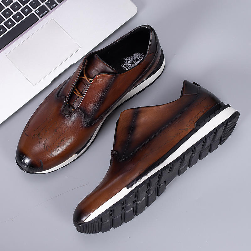 รองเท้าหนังวัวแท้คุณภาพสูง หัวแหลม กันน้ำ ระบายอากาศ น้ำหนักเบา บุฉนวน พื้นยาง สวมใส่ง่าย สไตล์ลำลองสำหรับธุรกิจ