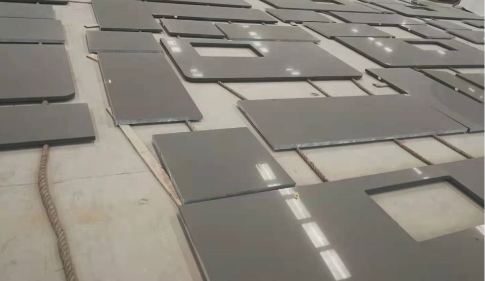 แผ่นหินควอทซ์สีเทาบริสุทธิ์,แผ่นหินหินอ่อนเทียมผลิตจากเวียดนามสีเทาสำหรับท็อปโต๊ะเครื่องแป้งห้องครัว