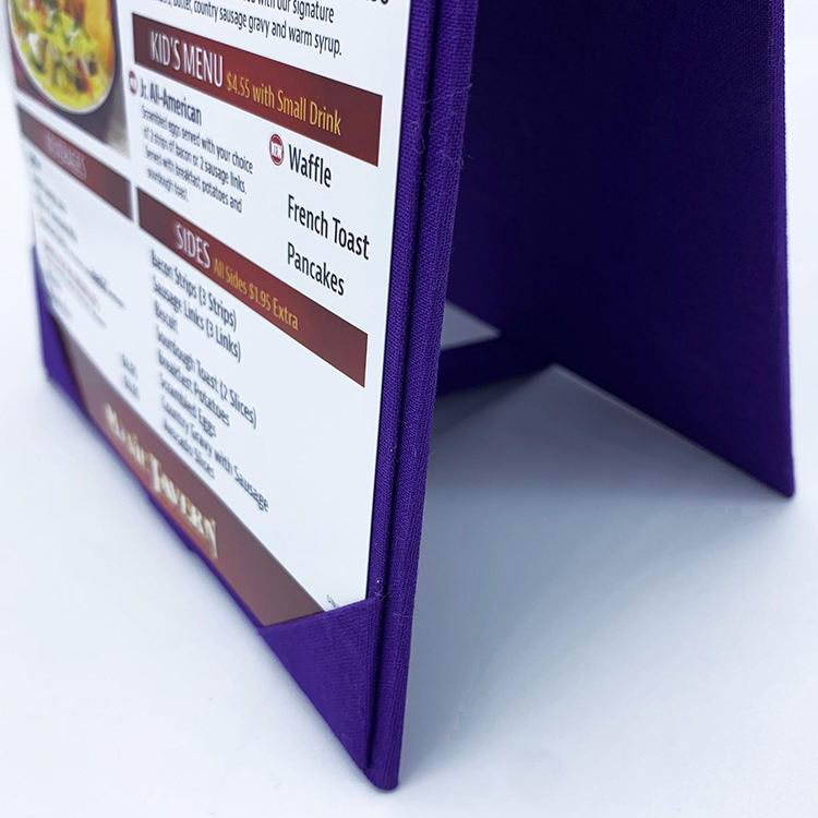 High Quality Purple Linen Fabric Menu with Corner Fixed Bar Menu 2 Sided Table Tents Menu Covers Restaurant