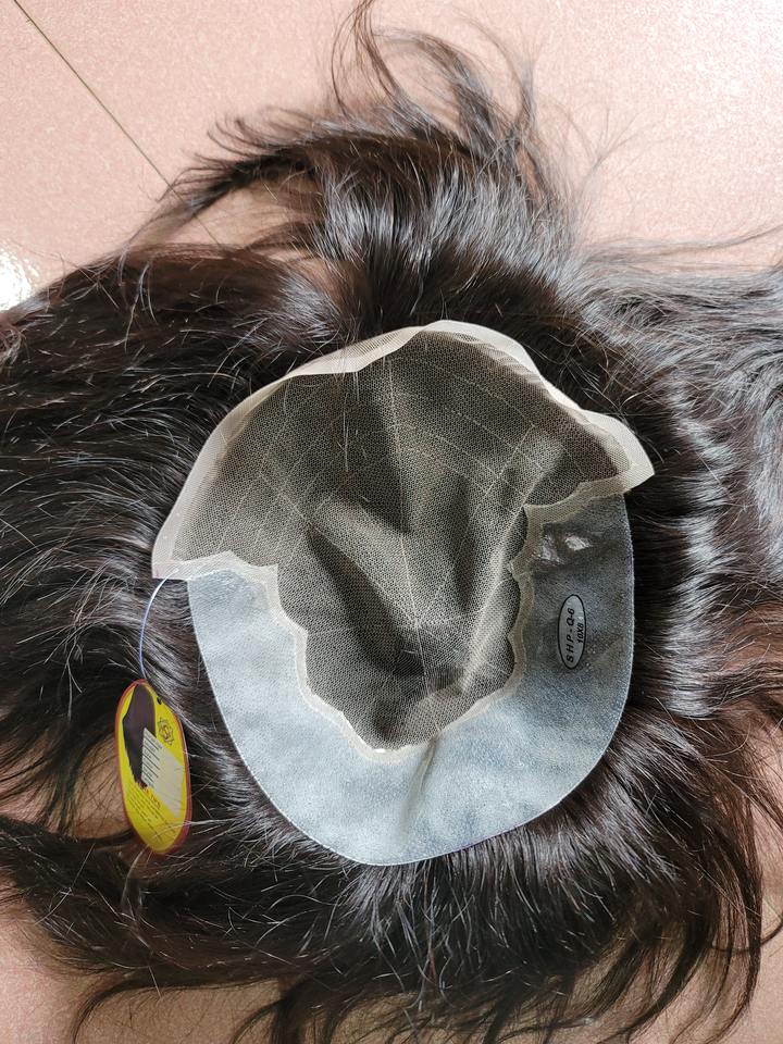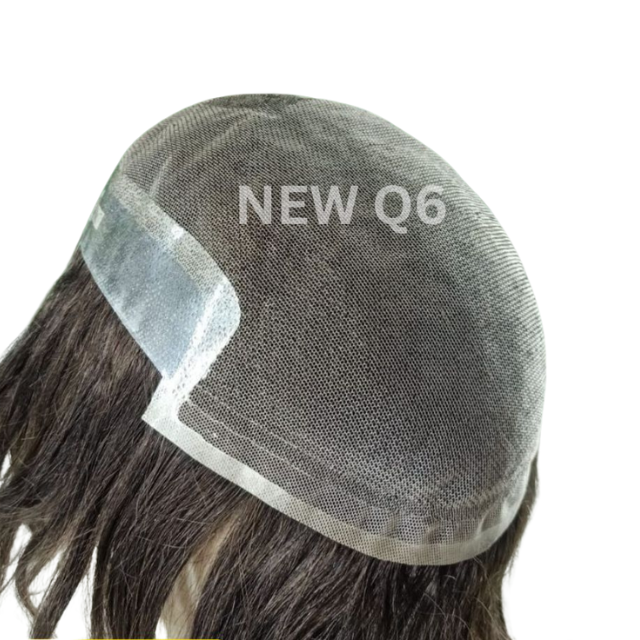 ระบบผมทดแทนคุณภาพสูง Q6 แบบปิดหน้าผากด้วยลูกไม้สำหรับผู้ชาย ผมอินเดียแบบลอนลึก ผิวบาง PU ผมแท้แบบเรมี่ ฟอกสี ผมหยิกตรง