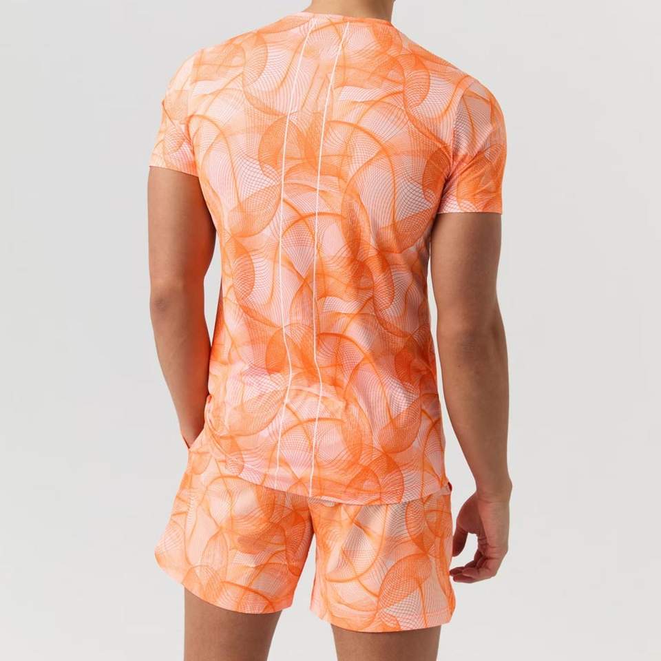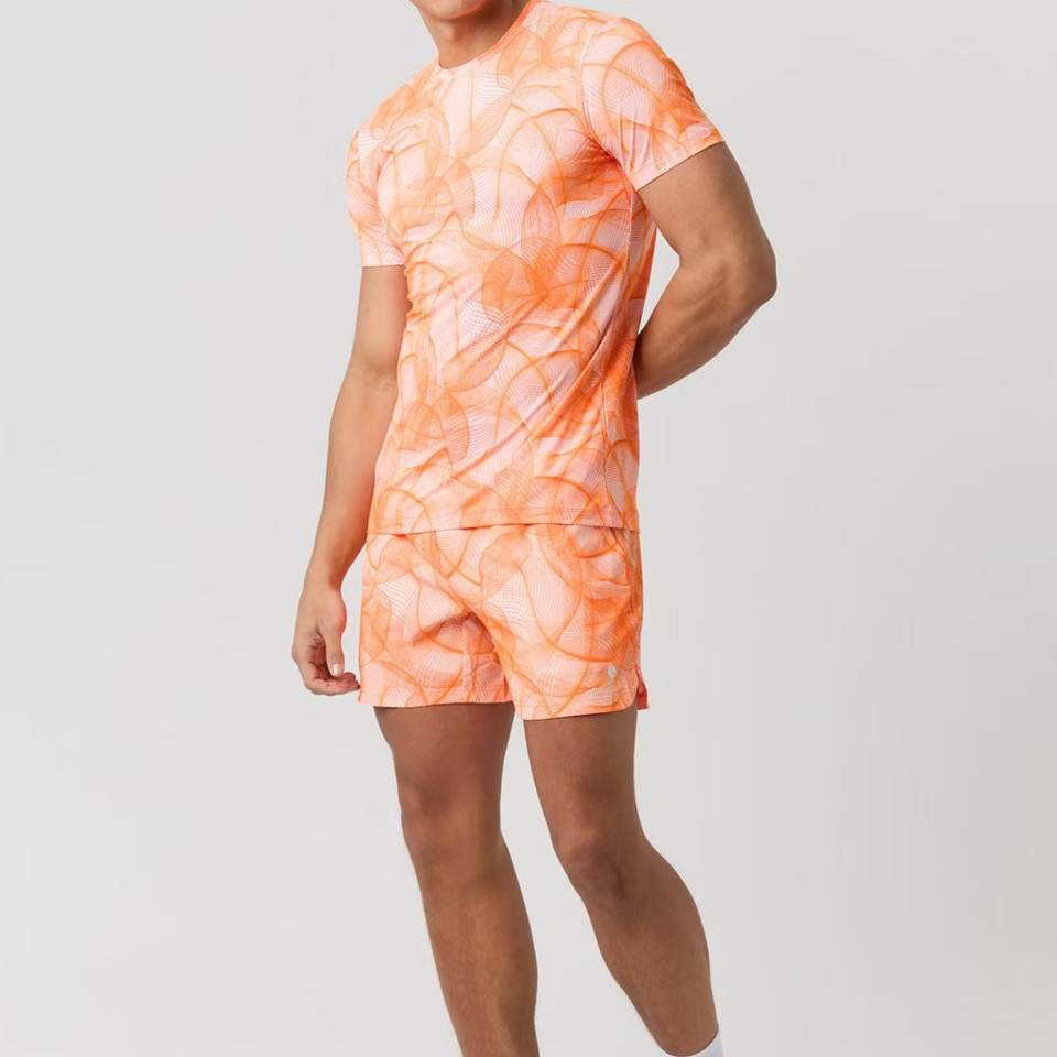 เสื้อยืดและกางเกงขาสั้นชุดเซ็ตผ้าโพลีเอสเตอร์พิมพ์ลายดิจิตอลแบบซับลิเมชั่นทั้งตัว คุณภาพสูง แห้งเร็ว สวมใส่สบายๆ ในฤดูร้อน แบบริงเกอร์