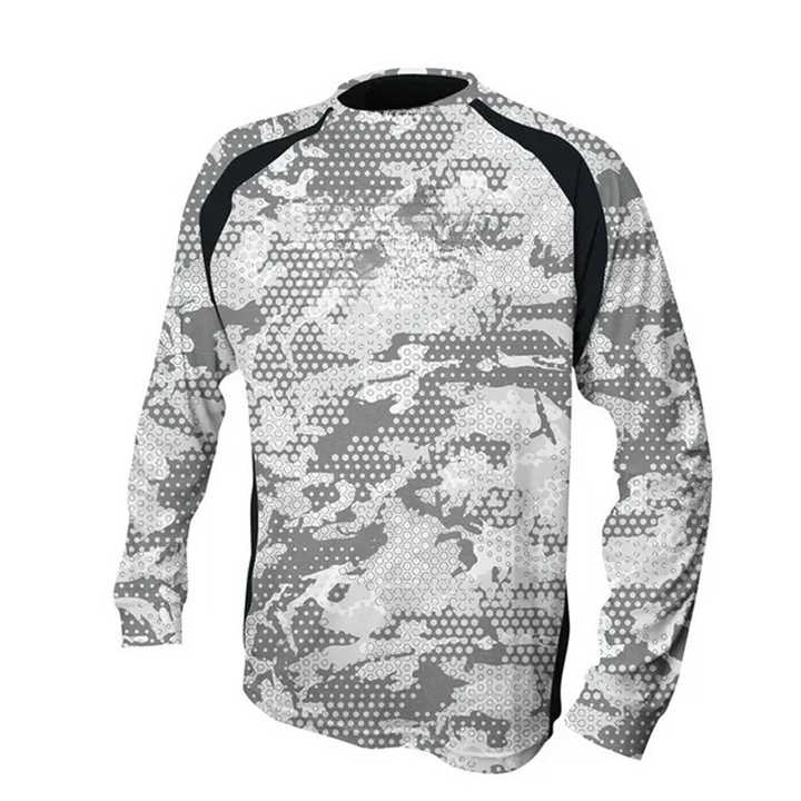 เสื้อตกปลาแขนยาวคุณภาพสูง แห้งเร็ว แบบซับลิเมชั่น คอทรงโอ พร้อมช่องระบายอากาศด้านข้าง ลายพราง ระบายอากาศได้ดี รับผลิตแบบ OEM 2026