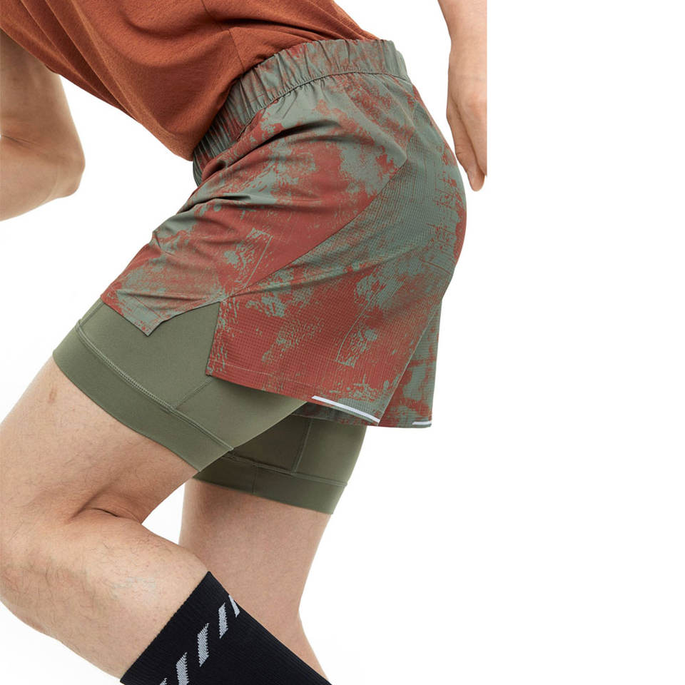 กางเกงขาสั้นตาข่ายสองชั้นสำหรับผู้ชายกางเกงขาสั้นวิ่งสองชั้นแห้งเร็วระบายอากาศได้ดีปรับแต่งได้