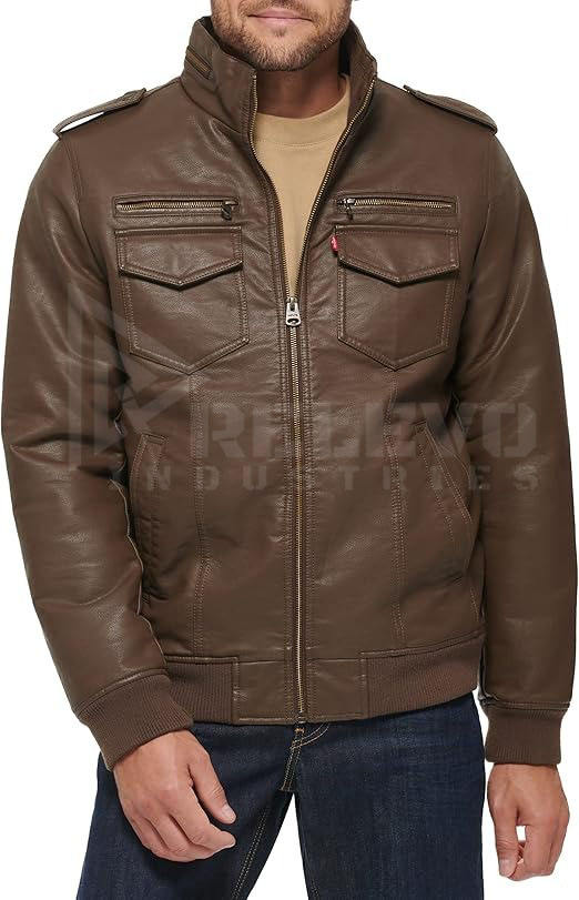 เสื้อแจ็คเก็ตหนังแท้คุณภาพสูง RELEVO INDUSTRY แบบเย็บลาย รักษ์โลก ออกแบบตามสั่ง OEM สำหรับผู้ชาย ฤดูหนาว สินค้าขายส่งจากสหรัฐอเมริกา