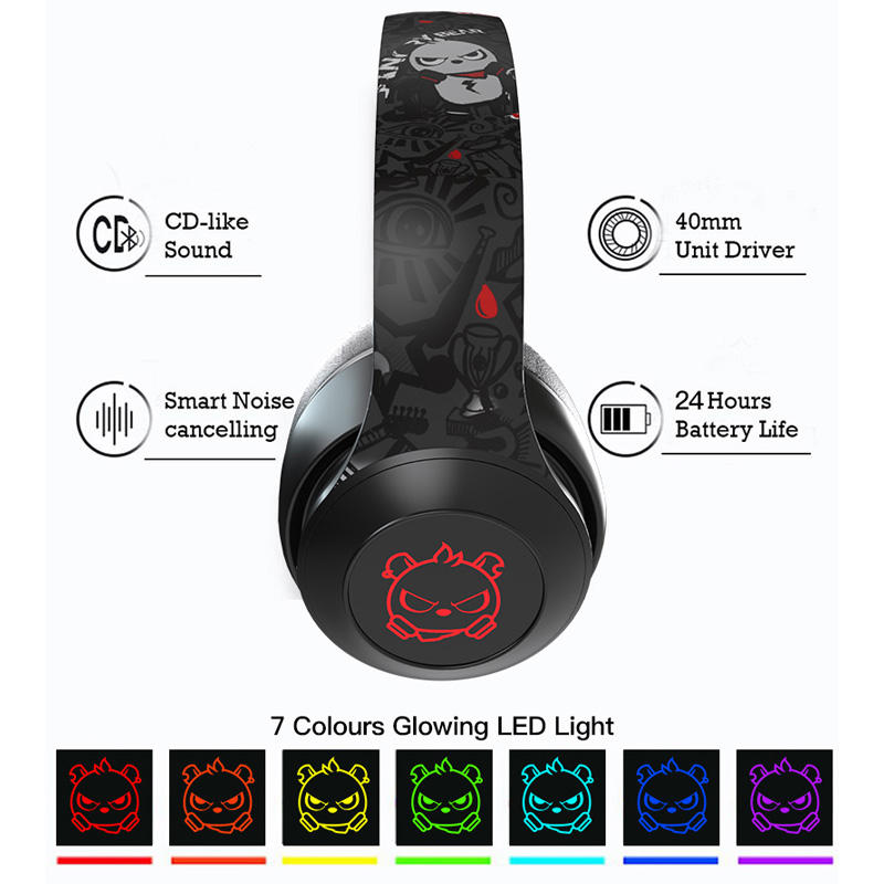 หูฟังบลูทูธ BH10 Angry Bear คุณภาพสูง พร้อมไฟ RGB หูฟังแบบครอบหู สำหรับเล่นเกม ตัดเสียงรบกวน