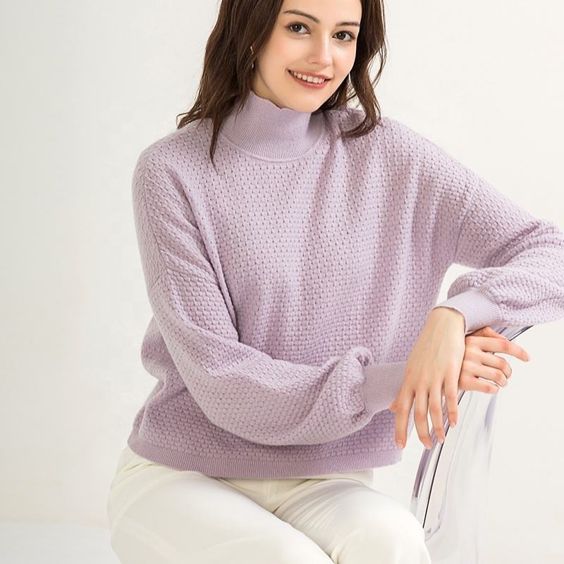 เสื้อสเวตเตอร์ถักแบบสวมหัวสำหรับผู้หญิงเสื้อสเวตเตอร์ถักแบบคอเต่าแขนยาว