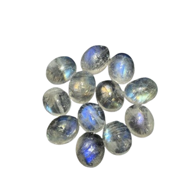 พลอยโมราธรรมชาติทรงหลวมทรงพระจันทร์สีรุ้งทรงวงรีขนาด3มม.