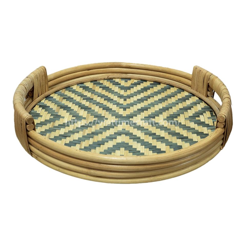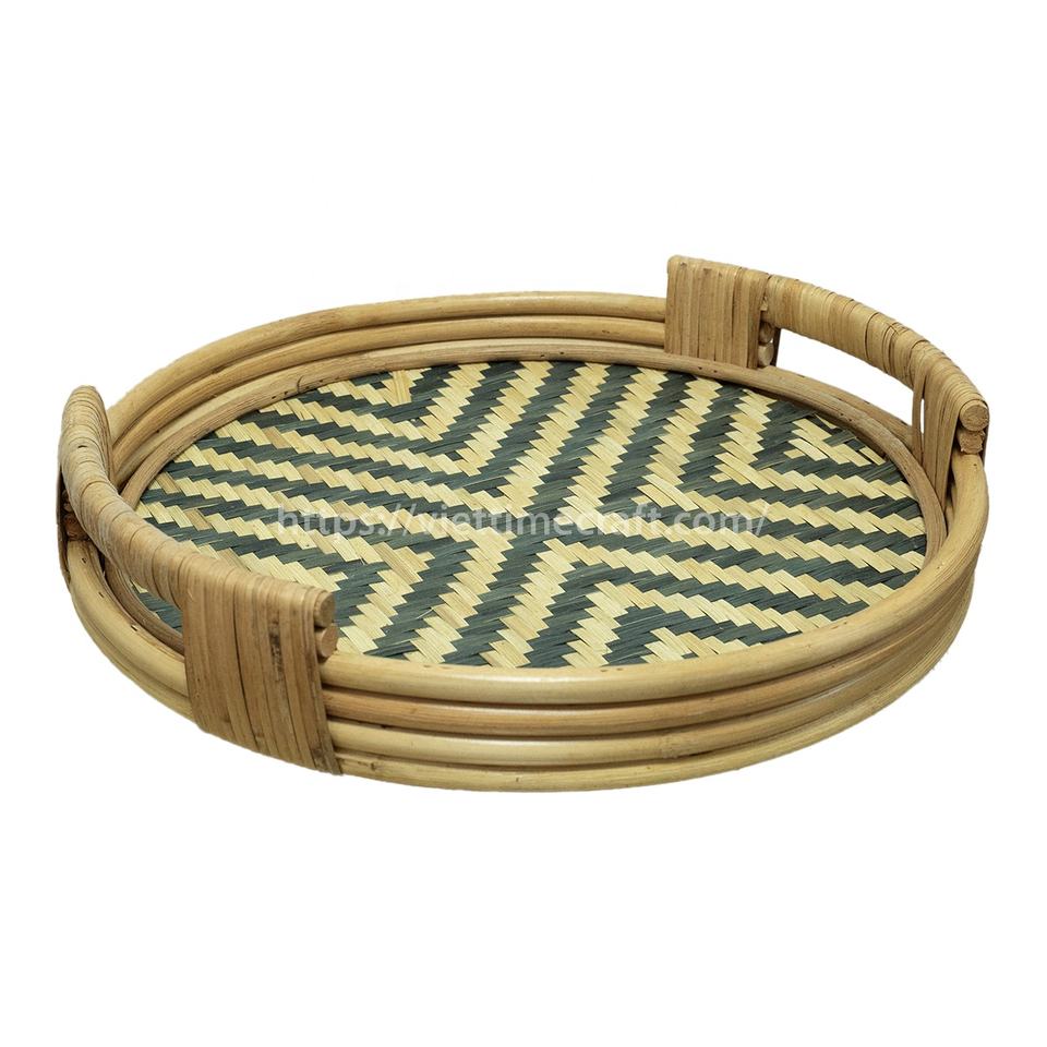 ถาดเสิร์ฟไม้ไผ่หวายพร้อมลวดลายเรขาคณิตถาดตะกร้าตกแต่งแบบเรียบง่ายสำหรับอาหารชากาแฟขายส่ง