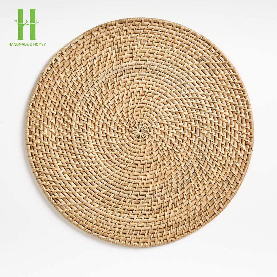 จานรองแก้วหวายคุณภาพสูง รูปทรงดอกไม้ แผ่นรองจานหวายสไตล์โบโฮ ของตกแต่งผนังแบบแขวน จานรองแก้วหวายจากเวียดนาม