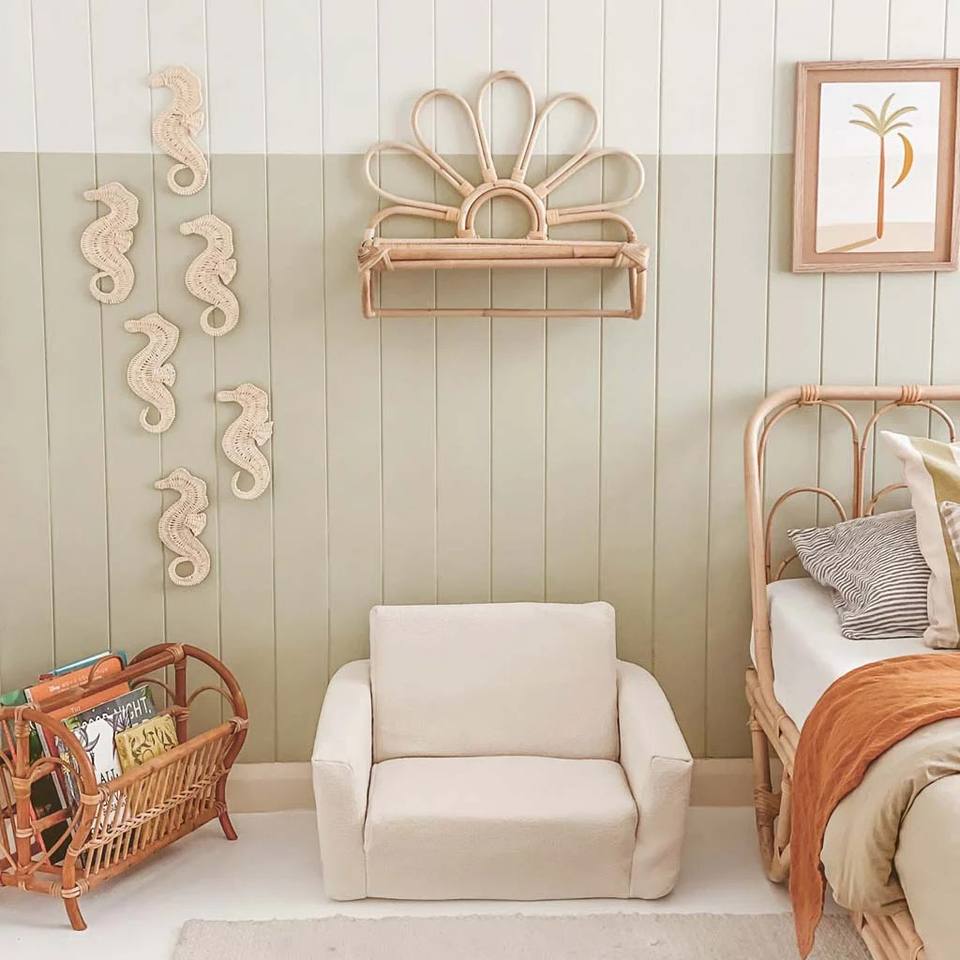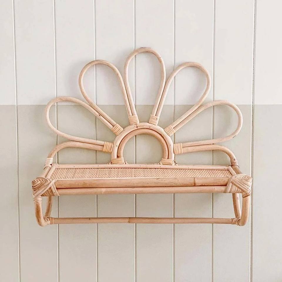 ชั้นวางของเด็กทรงดอกไม้หวายคุณภาพสูง ตกแต่งผนังด้วยวัสดุธรรมชาติ สำหรับห้องนอนเด็ก ห้องเด็กอ่อน เก็บของและจัดแสดง เป็นมิตรกับสิ่งแวดล้อม