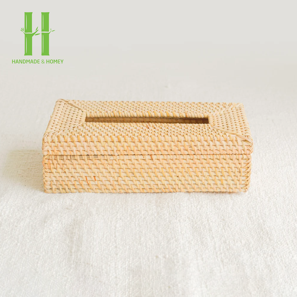 กล่องใส่กระดาษทิชชูหวายทรงสี่เหลี่ยมทำจากธรรมชาติกล่องใส่กระดาษทิชชู่หรูหราจากเวียดนาม