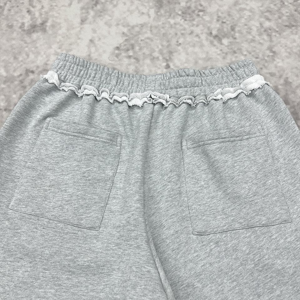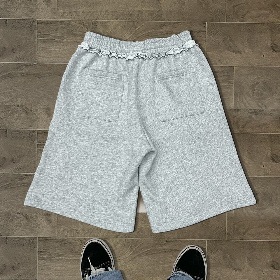 กางเกงขาสั้นจ็อกเกอร์พิมพ์ลายขอบดิบคุณภาพสูง กางเกงขาสั้นทรงหลวมผ้าเฟรนช์เทอร์รี่เรียบๆ ไม่มีลาย กางเกงขาสั้นออกกำลังกายผ้าฝ้ายดีไซน์เนอร์สำหรับผู้ชาย