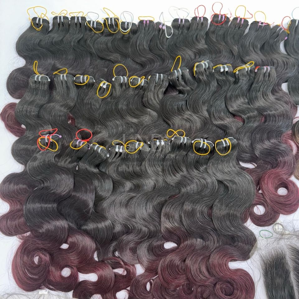 ผมแท้คุณภาพสูงแบบออมเบร ลอนคลื่นธรรมชาติ พร้อมผมปิดหน้าผากและผมเป็นมัดสำหรับทำวิก