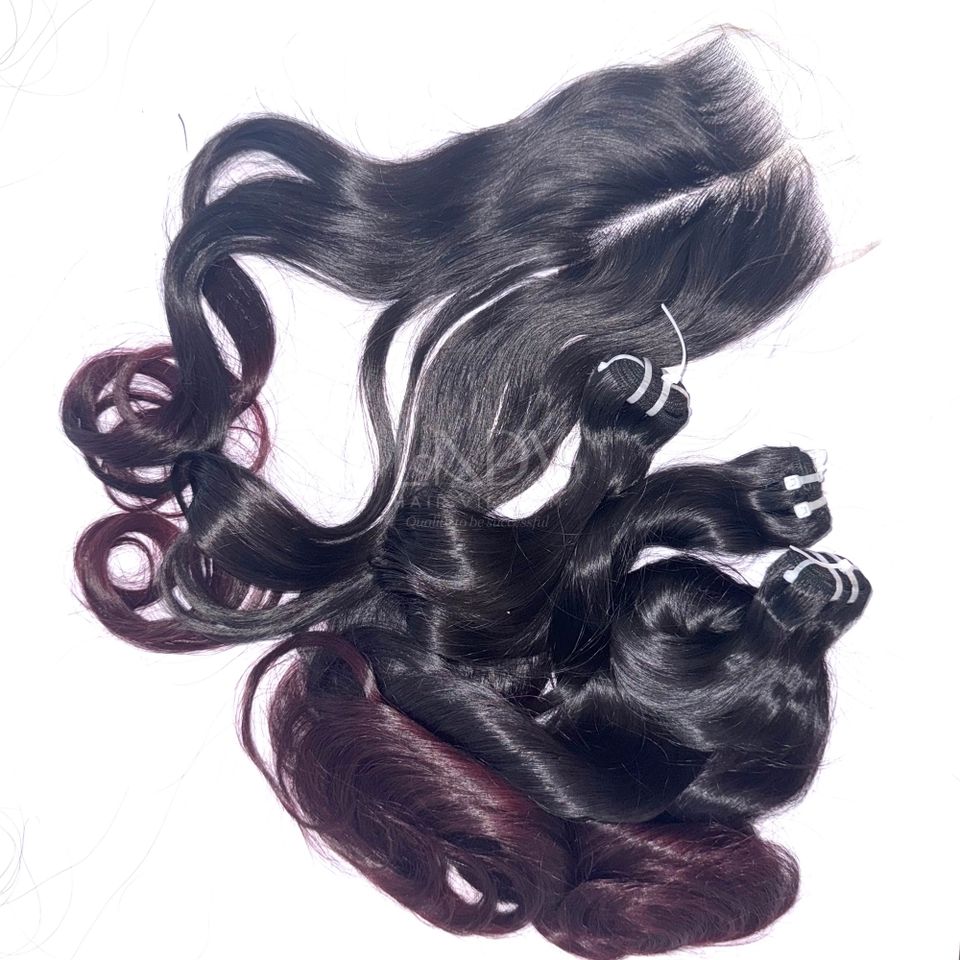 High Quality Raw Hair wavy Tip Ombre Color Bundles With Closure to Make Wigs From Real Vietnamese hair