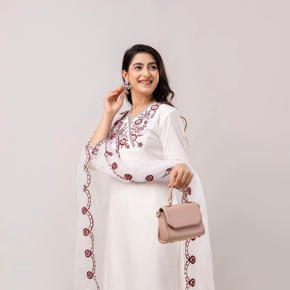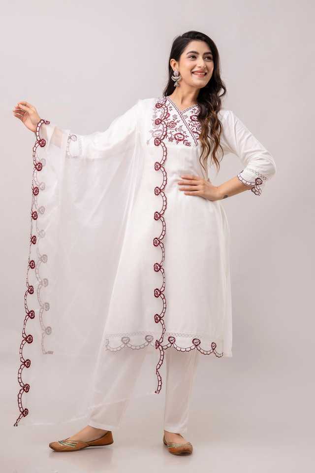 ชุดคุर्ตาผ้าเรยอนคุณภาพสูงสำหรับผู้หญิง พร้อมงานปักสวยงาม มาพร้อมกางเกงและผ้าคลุมไหล่ผ้าออร์แกนซ่า กางเกงเรยอนสำหรับงานปาร์ตี้สำหรับผู้ใหญ่