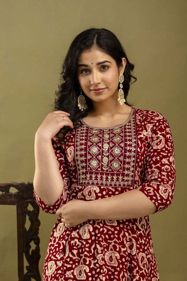 ชุดผ้าเรยอนพิมพ์ลาย Anarkali สำหรับผู้ใหญ่ชุดปาร์ตี้ทางการสมัยใหม่ปักลายพิมพ์ดิจิตอลซักได้ตามธรรมชาติ