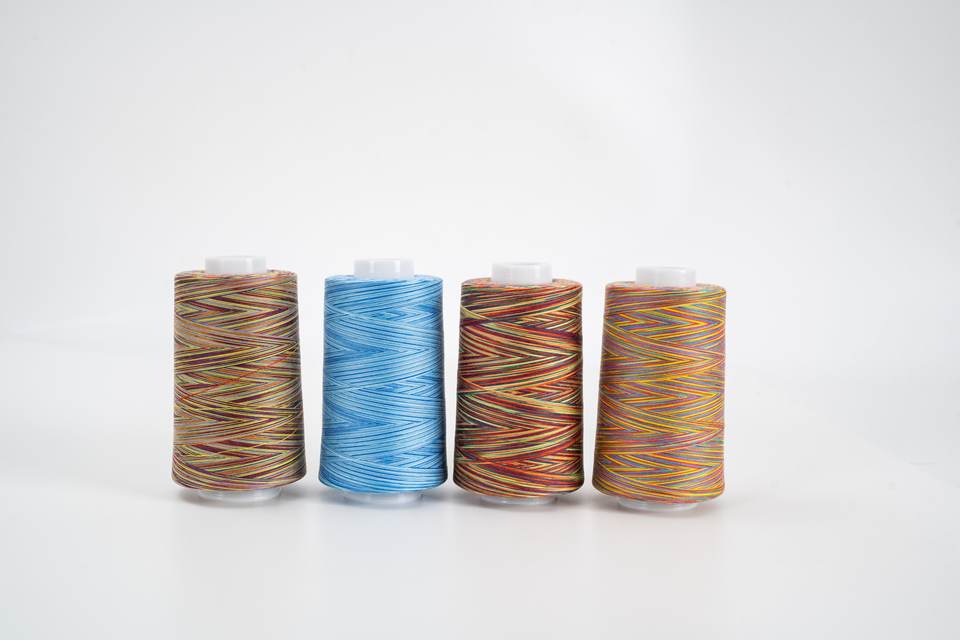 ด้ายเย็บผ้าโพลีเอสเตอร์สีรุ้งสำหรับคอมพิวเตอร์ผ้าเรยอน