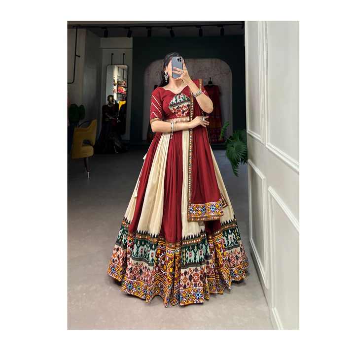 High Quality Rayon with Printed Silk Lehenga Choli with Gamthi and Mirror Work Bridal Lehenga Choli for Export Sale
