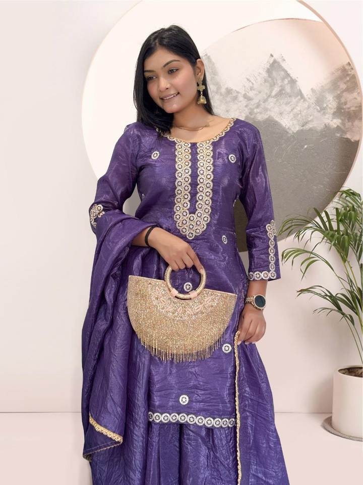 เสื้อไหมทอง ทองครัช พร้อมกางเกงปาลาซโซ และผ้าคลุม