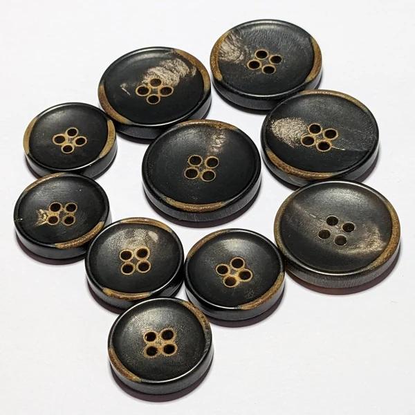 กระดุมเขาควายแท้คุณภาพสูง ปั๊มโลโก้ตามสั่ง อุปกรณ์ตกแต่งเสื้อผ้าและงานประดิษฐ์ สีเขาควายธรรมชาติ