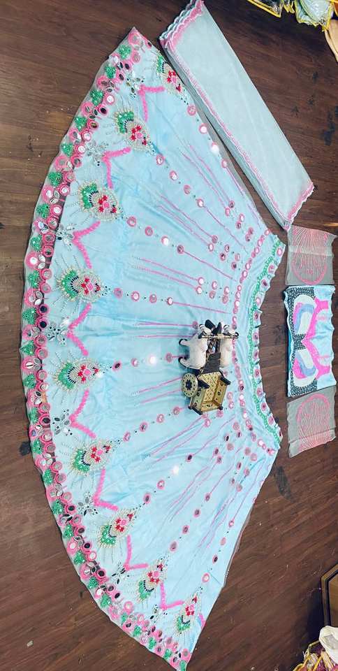 เลเฮนกาคุณภาพสูง ประดับด้วยเลื่อมมุกและด้ายปักอย่างประณีต สำหรับชุดเจ้าสาวแบบอินเดียและปากีสถาน