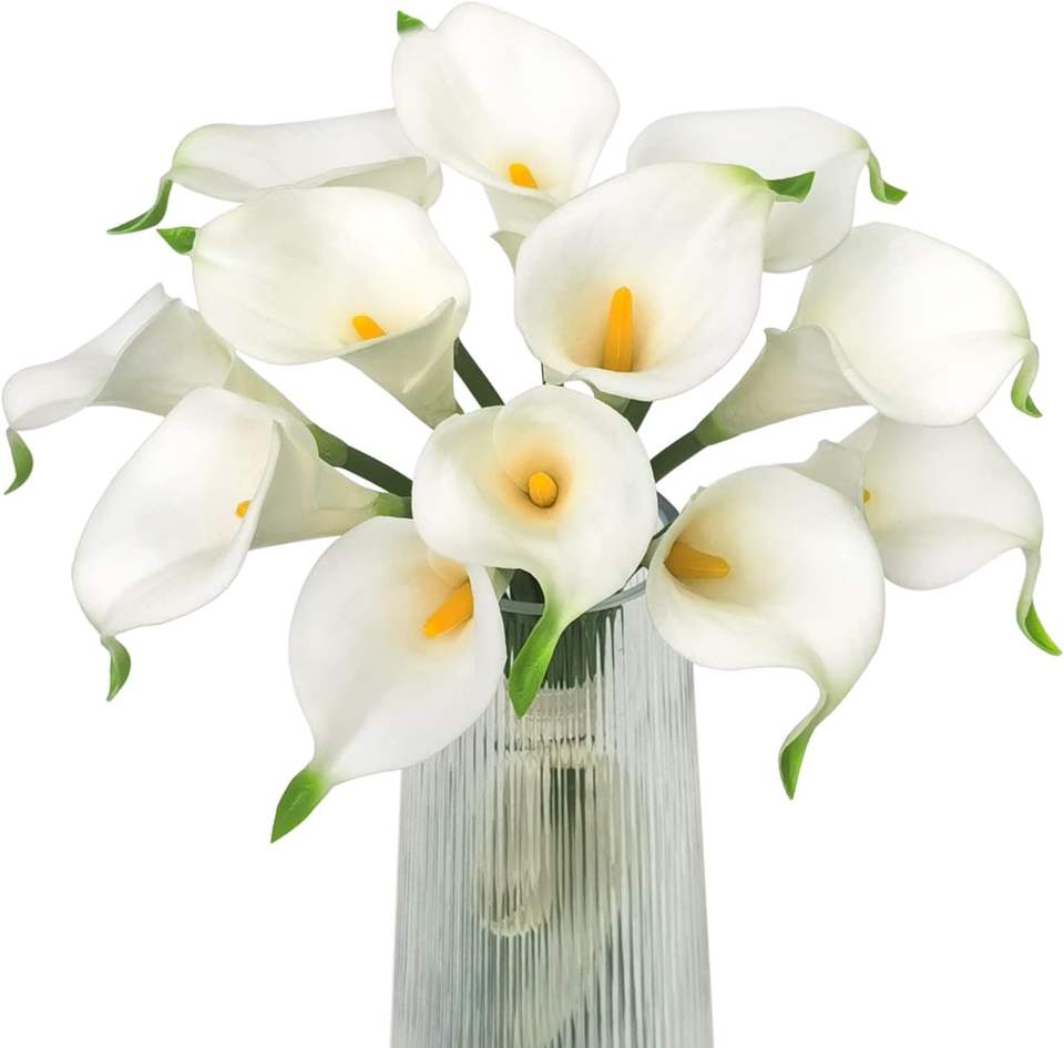 ดอกคาลล่าลิลลี่สีขาว EVA คุณภาพสูง ทำมือ สัมผัสเหมือนจริง สำหรับตกแต่งโต๊ะกลางงานแต่งงาน วันแม่ และตกแต่งบ้าน