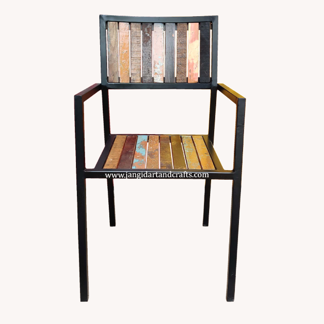 High Quality Reclaimed Wooden Arm Rest Industrial Iron Metal Chairs Outdoor Restaurant Chair and Garden Furniture Material Wood