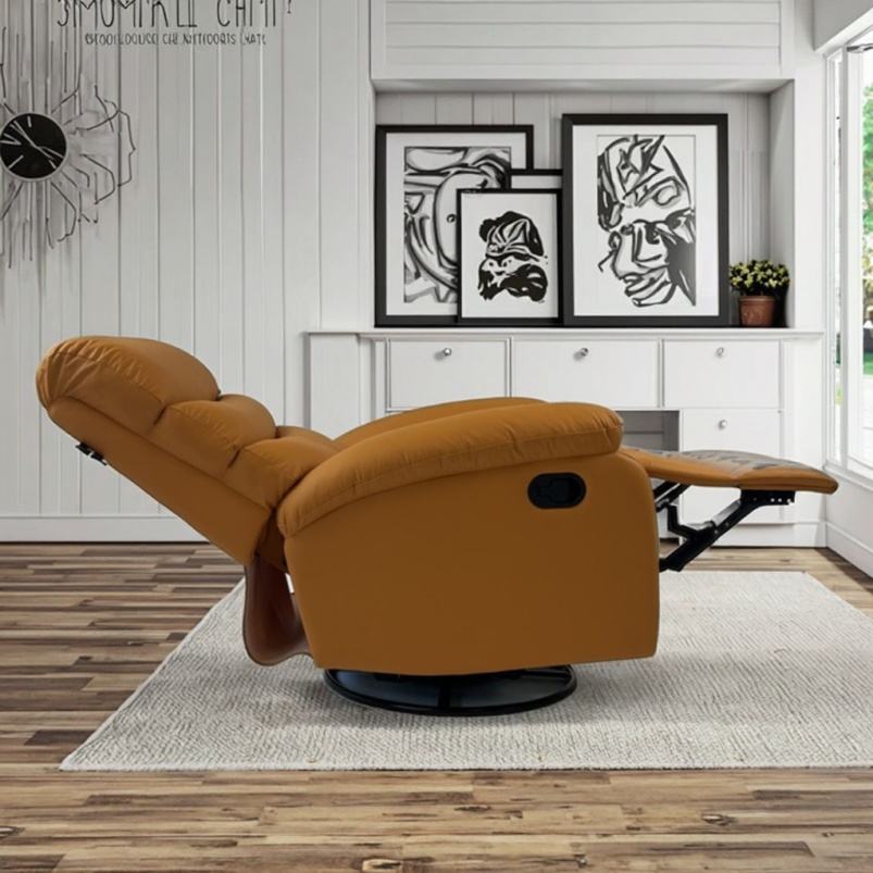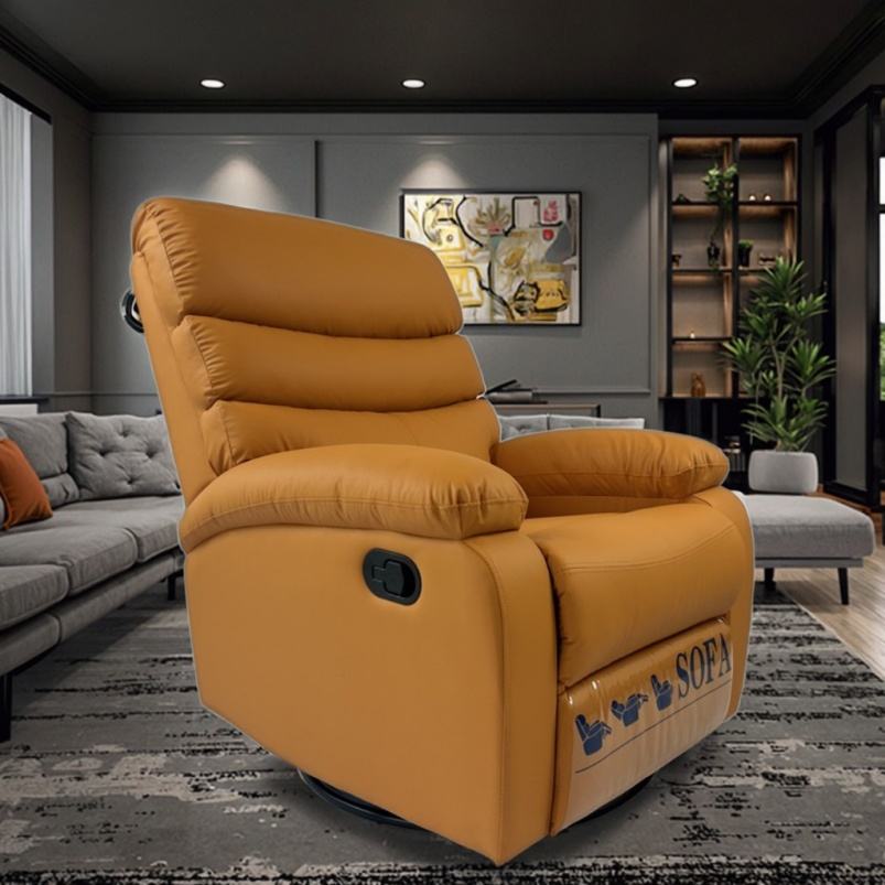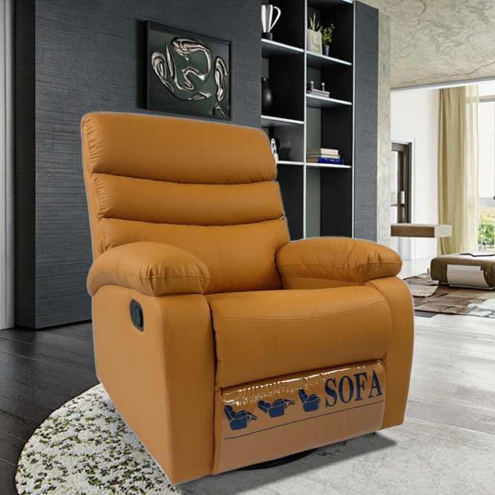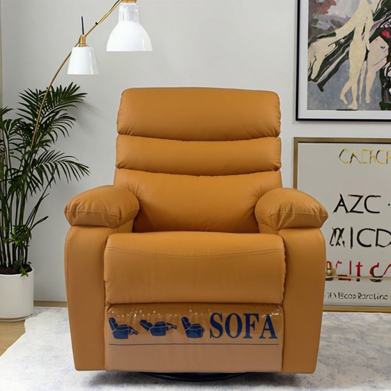 เก้าอี้โซฟาแบบมีที่นั่งเดี่ยวสำหรับห้องนั่งเล่นเก้าอี้โซฟาหนังมีฟังก์ชันหมุนและโยกได้