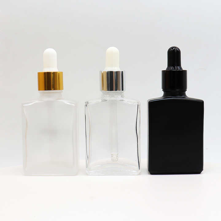 ขวดแก้วฝ้าทรงสี่เหลี่ยมคุณภาพสูง ขนาด 15 มล. 30 มล. 50 มล. 100 มล. ขวดแก้วหยดทรงเหลี่ยมสำหรับบรรจุเซรั่มเครื่องสำอาง