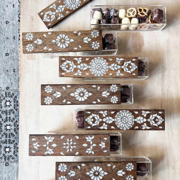 กล่องเก็บอะคริลิครูปทรงสี่เหลี่ยมผืนผ้ากล่องเก็บขนมหวานของหวานทำจากไม้มุกแม่