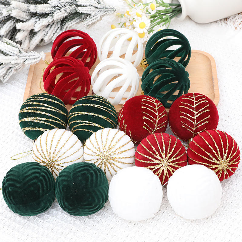 ลูกบอลคริสต์มาสสีแดงคุณภาพสูงเคลือบกำมะหยี่ - เครื่องประดับตกแต่งต้นคริสต์มาสแบบแขวนพร้อมผิวสัมผัสกำมะหยี่