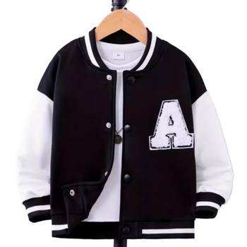 แจ็กเก็ตเบสบอลลายตัวอักษรสีแดงสำหรับทุกเพศเสื้อแจ็กเก็ตปักลายแฟชั่น