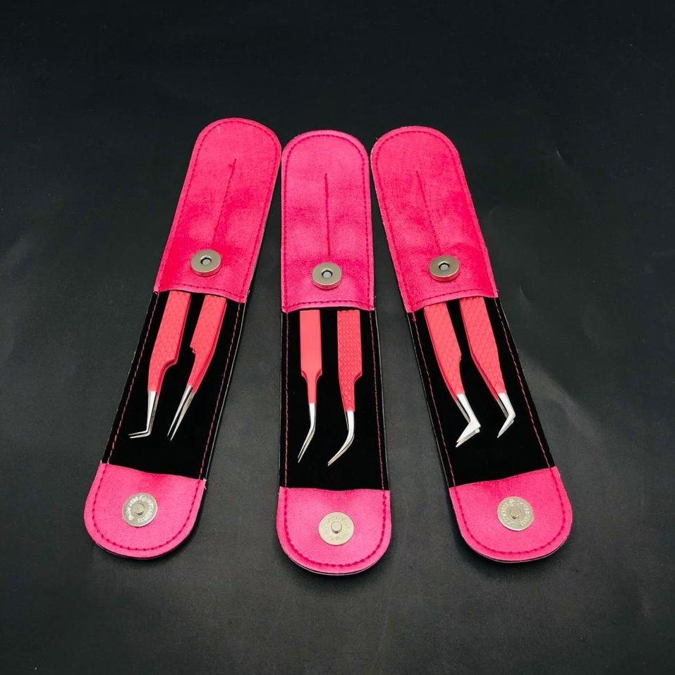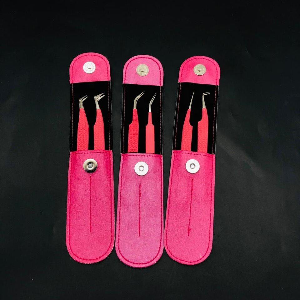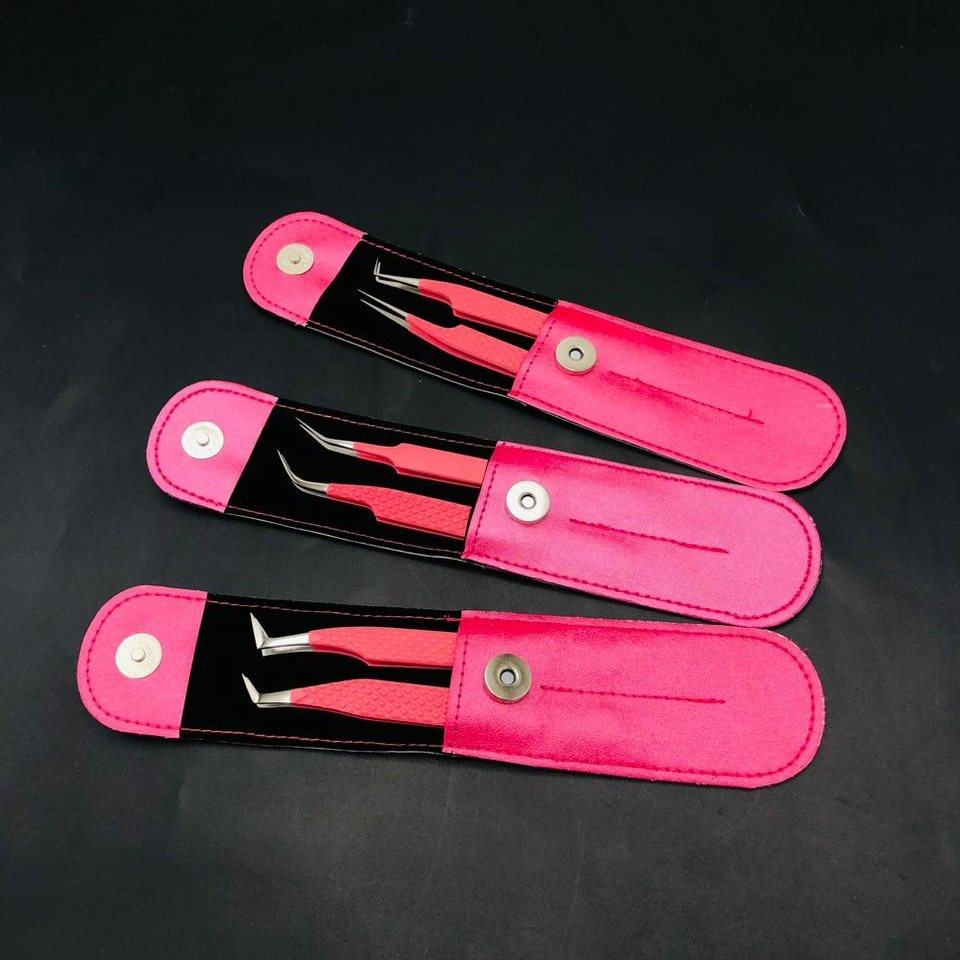 ชุดแหนบหนีบขนตาสแตนเลสเคลือบผงสีแดงมีเพชรทนทาน