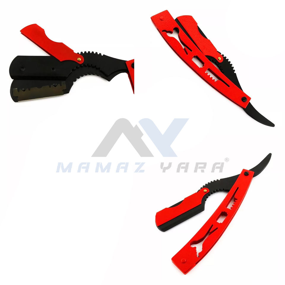 มีดโกนหนวดคุณภาพสูง สีแดง แบบพับได้ ทำจากสแตนเลส ด้ามจับแบบแมนนวล ใบมีดโกนแบบเปลี่ยนได้