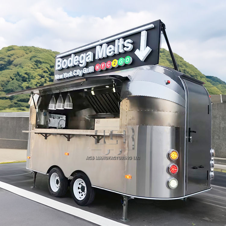 Remolque รถลากอาหารแบบพกพาได้รถเข็นอาหารสแตนเลสรถเทรลเลอร์ฮอทด็อกรถเทรลเลอร์เคลื่อนที่ได้เต็มรูปแบบราคาถูก