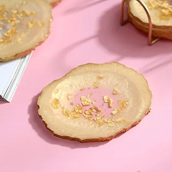 ถาดรองแก้วทำด้วยมือทำจากเรซิ่นพร้อมขาตั้งโลหะสำหรับโต๊ะทำงานบ้านและสำนักงานที่รองแก้วหินรูปทรงไม่สม่ำเสมอ